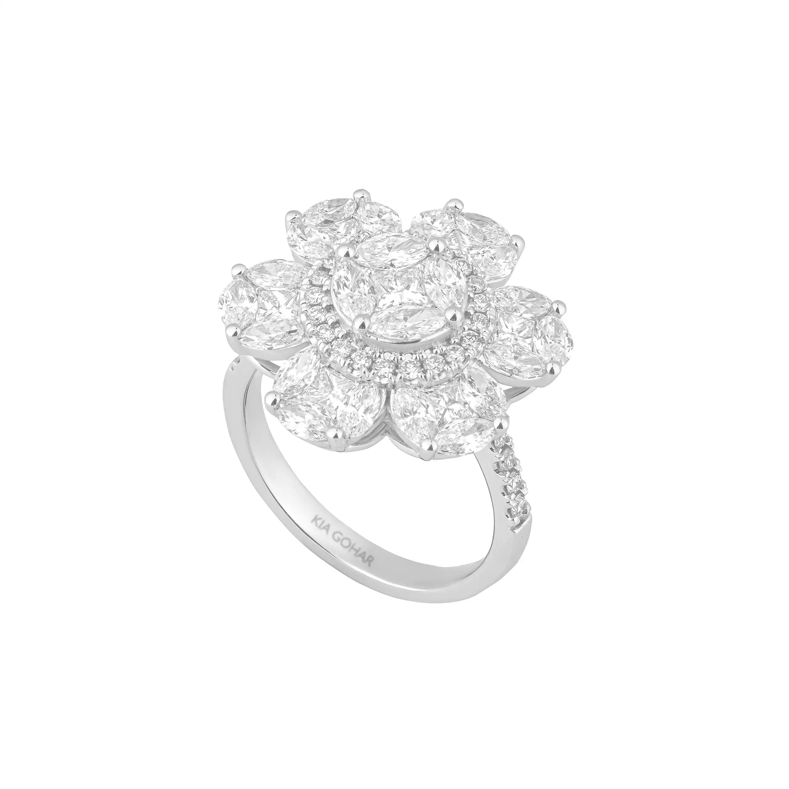 انگشترجواهر کد ۵۰۱، نظر زیباییشناسی و ساختار، جزو طراحیهای کلاسیک لوکس و پرجلوه محسوب میشود که طراحی ام شامل یک گل چند پر است که اطراف آنسنگ های Pear Cut به کار رفته است که در نتیجه یک ترکیب متعادل بصری قوی ایجاد میکند و نگاه را بلافاصله به خود جذب میکند.
