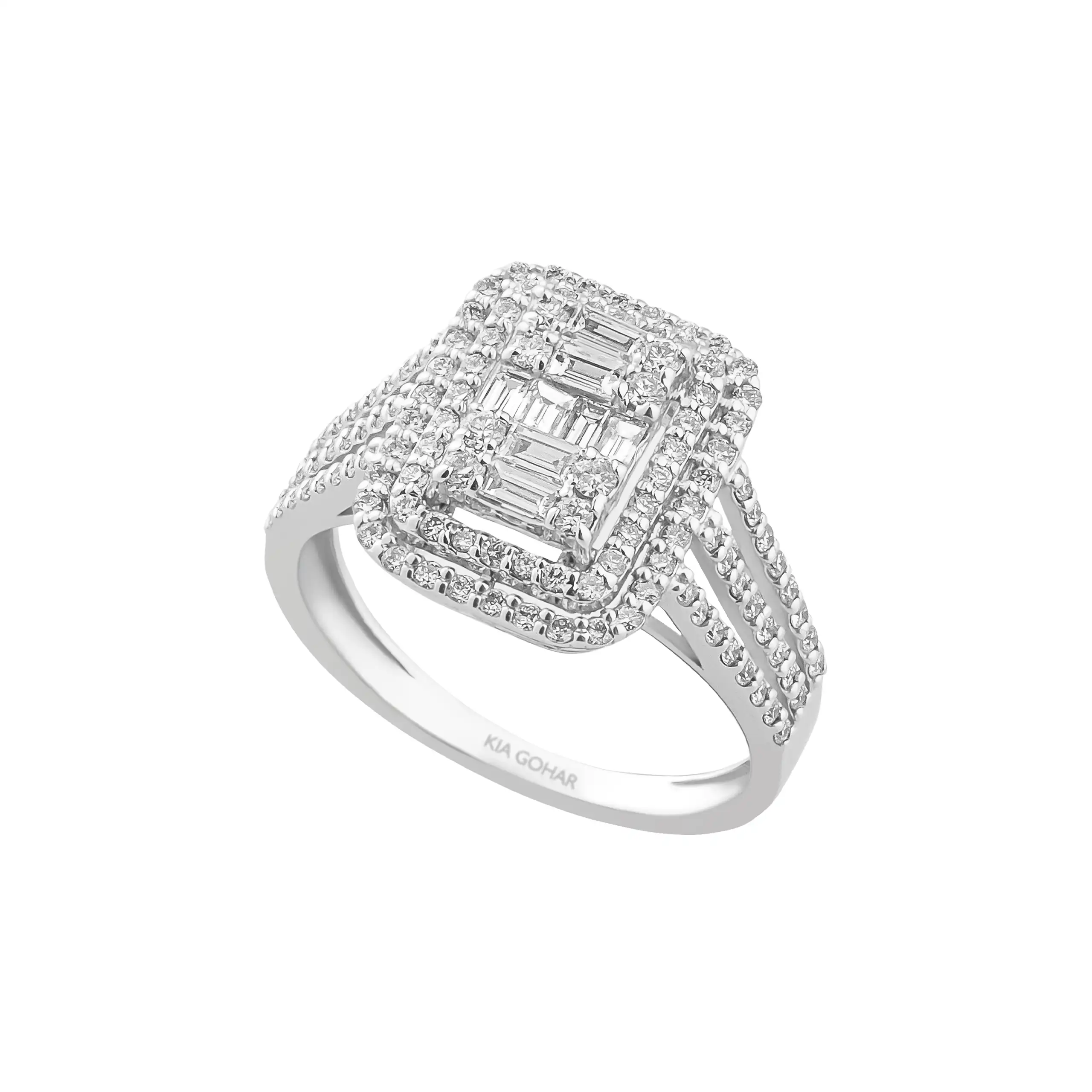انگشتر جواهر کد ۵۸۶، یک رکاب سه تکه که نمایانگر قدرت و استحکام است و سنگ مرکزی را نیز برجسته تر نشان می دهد. مرکزیت انگشتر که با الماسی با تراش امرالد مزین شده است حس مدرن و لوکس بودن را به شما می دهد. جدال هندسه و لطافت توازنی جذاب میان ظرافت و قدرت که شما را به دنیای جواهرات خاص دعوت می کند.